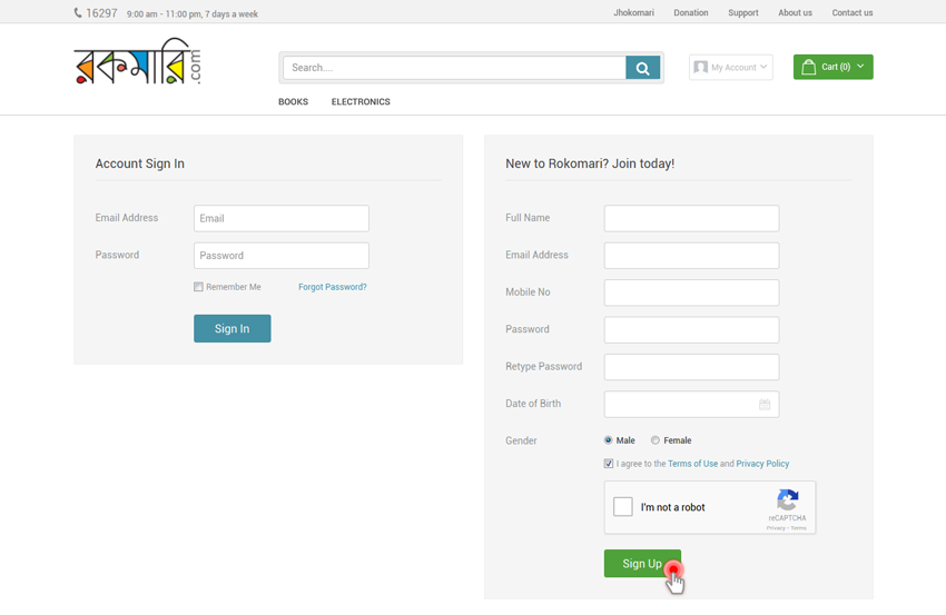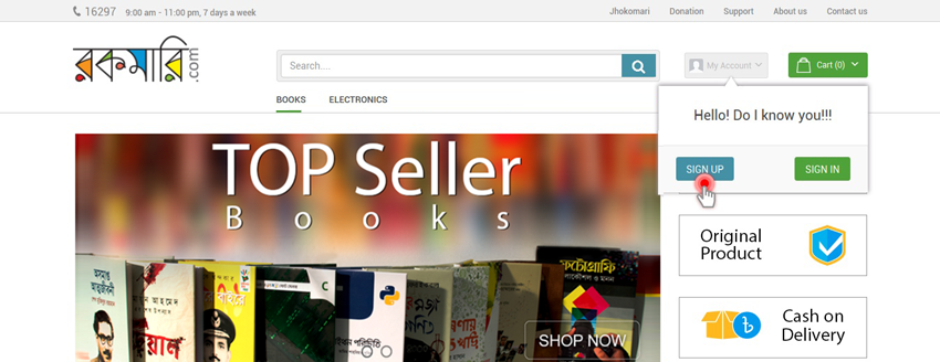 For enjoying our special offers and buying our exclusive products you first need to create an account in rokomari.com. By signing up you can buy our products, write a review, make a list, and enjoy our discount offers and many more.